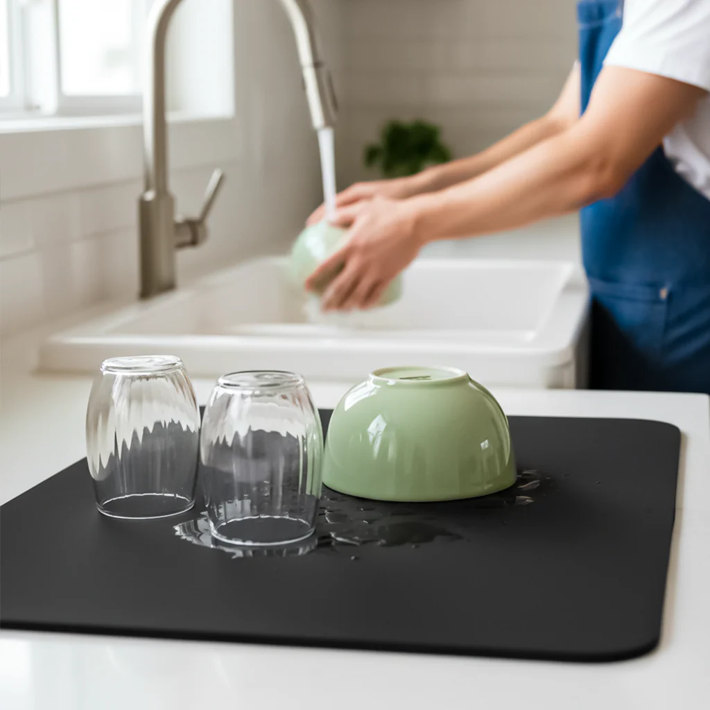 Use it for drying dishes, prepping food, draining veggies, protecting countertops, or even as a travel surface. From kitchen counters to dining tables, from outdoor picnics to balcony brunch — this mat delivers convenience wherever you need it. 🍃🌞
