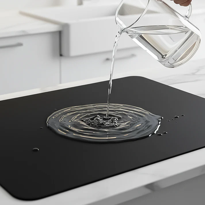Our advanced multi-layer absorbent core sucks up water fast, while the breathable top layer evaporates moisture quickly — leaving your counters dry in seconds (not soaked for hours).